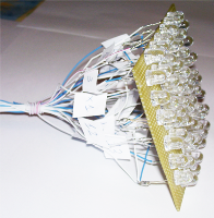 I led sono un ottima tecnologia di illuminazione grazie alle loro qualità di luminosità, robustezza, colore, accensione istantanea, durata, risparmio energetico e direzionalità. Ma nel mio caso, quest’ultima caratteristica, si è rivelata svantaggiosa. Infatti la luce emessa da un led risulta molto visibile solo da un punto di vista frontale, e per il mio obbiettivo non era sufficiente. Per ottenere un display che risultasse visibile da ogni punto di osservazione, ho cercato una speciale plastica bianca opaca, molto usata per creare lampade personalizzate, con cui o costruito un case. Questa speciale plastica trattiene la luce emessa dai led, colorandosi e permettendo di vedere le lettere come se fossero stampate su una superficie piana.